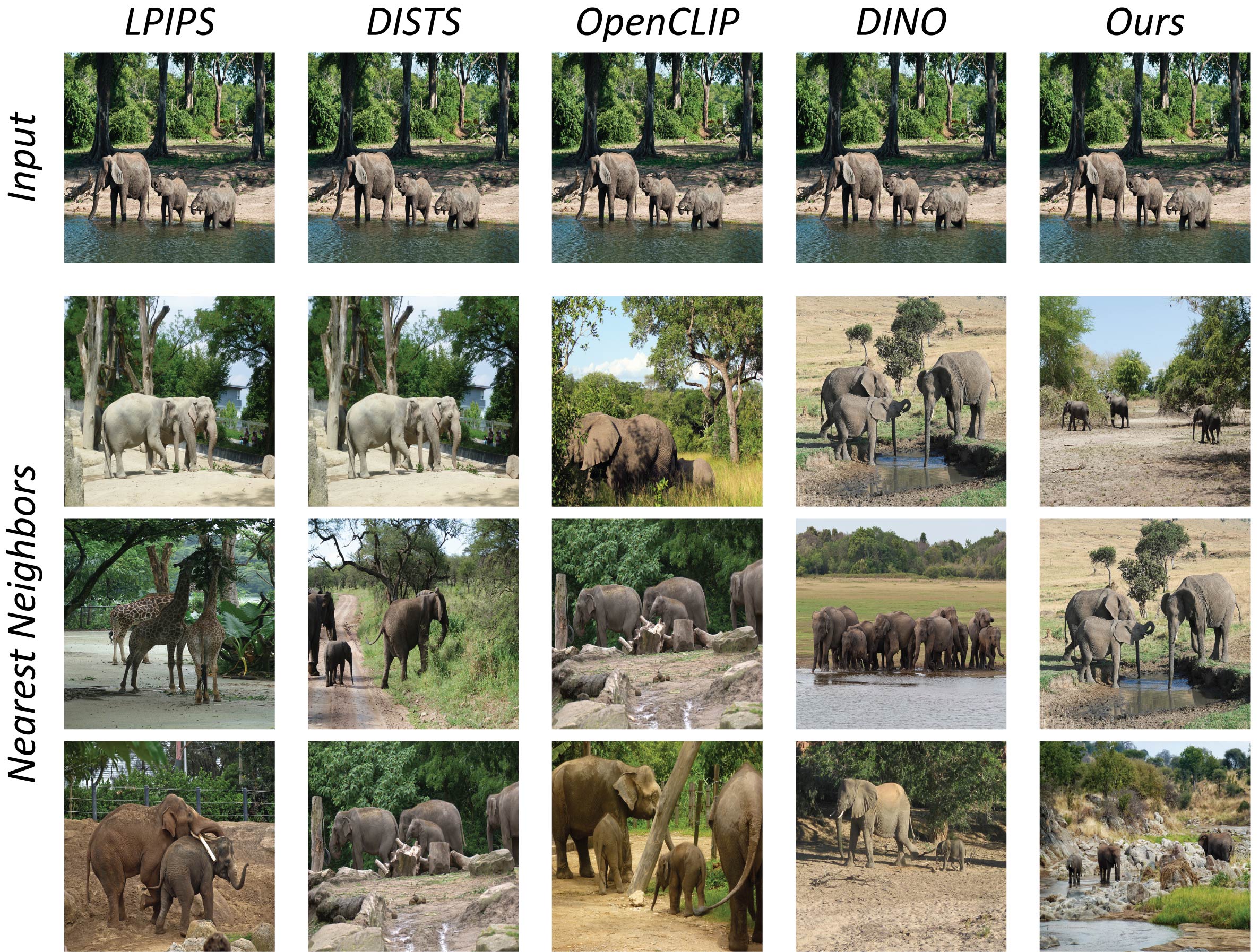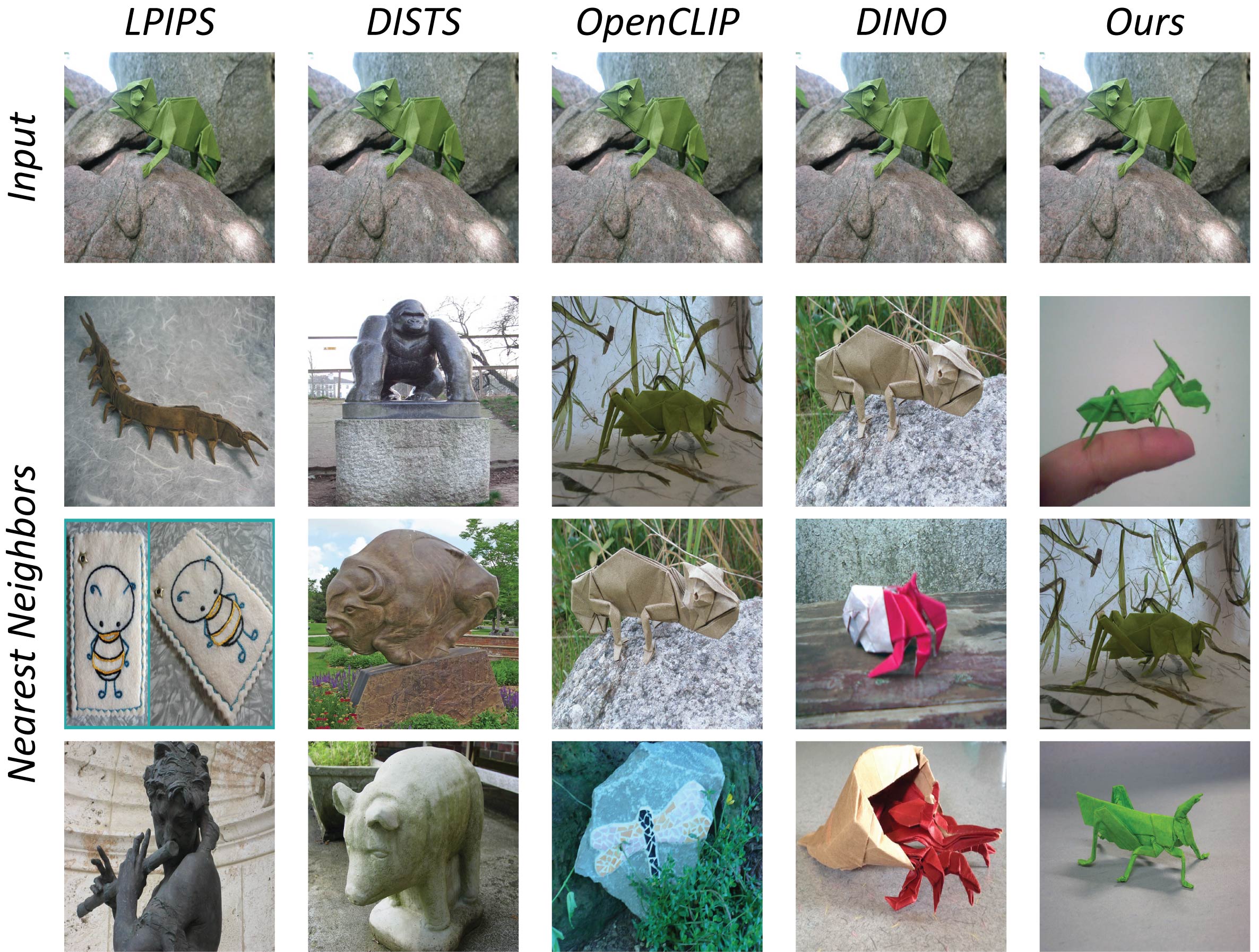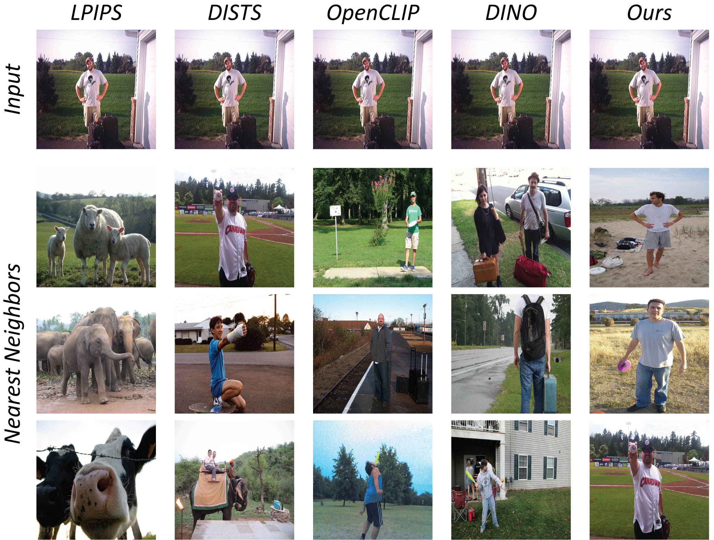Although the datasets include images outside of our training domain, our model consistently retrieves neighbors with similar appearance and class to that of the query image.